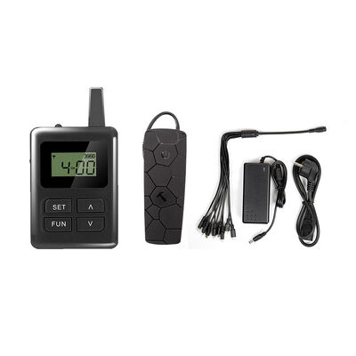 A: A single transmitter can connect a large number of receivers synchronously. We provide 20/30/50/100/200/500 receivers matching kits for different group scales.